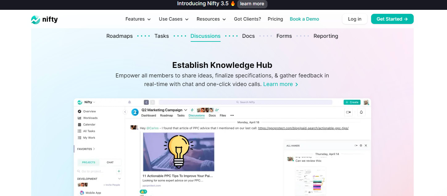 - Integrations: Nifty integrates with tools such as Google Docs, Google Sheets, Slides, and Calendar.