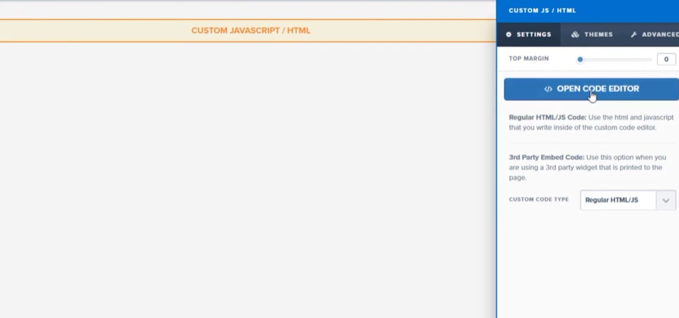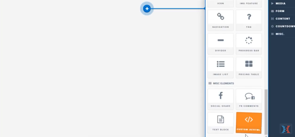 Then click the ‘+’ again, scroll down the menu and click ‘Custom JS/HTML’.