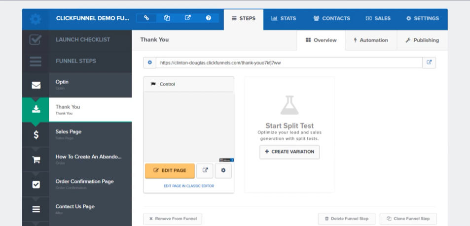 Log into your ClickFunnels account and open your funnel. Select the step in your funnel where you want to add your quiz. Then click ‘Edit Page’.
