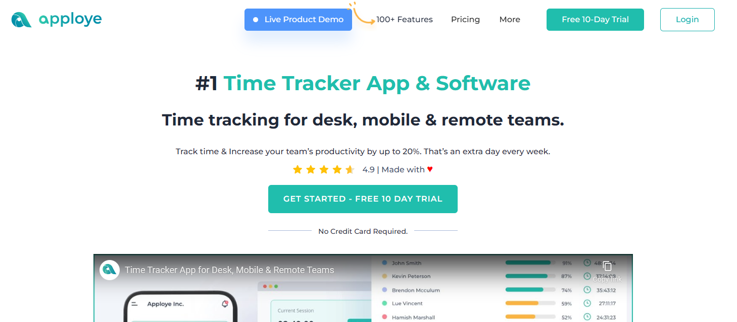 Apploye is an advanced time-tracking software designed to help you easily track and monitor your remote employees. It also offers features like app and URL tracking, activity monitoring, payroll, invoicing, detailed reports, and tools for managing teams, projects, and budgets. With over 100 features in a single app, Apploye gives you everything you need to keep your team productive and on track, no matter where they’re working.