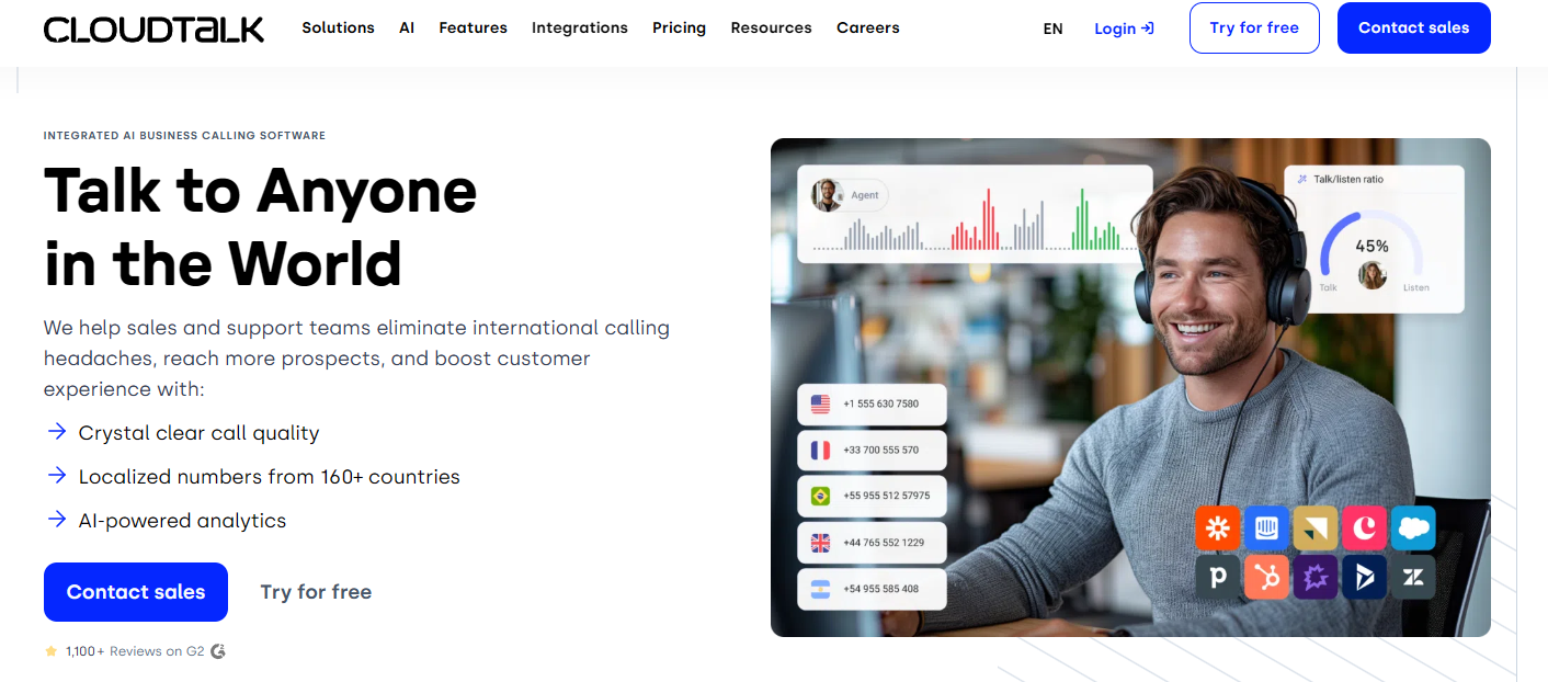 CloudTalk is a cloud-based AI-powered call center solution of choice for businesses wanting to create exceptional customer experiences. It offers features like IVR, click-to-call, power dialers, along with AI-powered automated call transcription, notes, and insights. CloudTalk streamlines your workflows and connects seamlessly with over 35 integrations, including HubSpot and Zendesk.