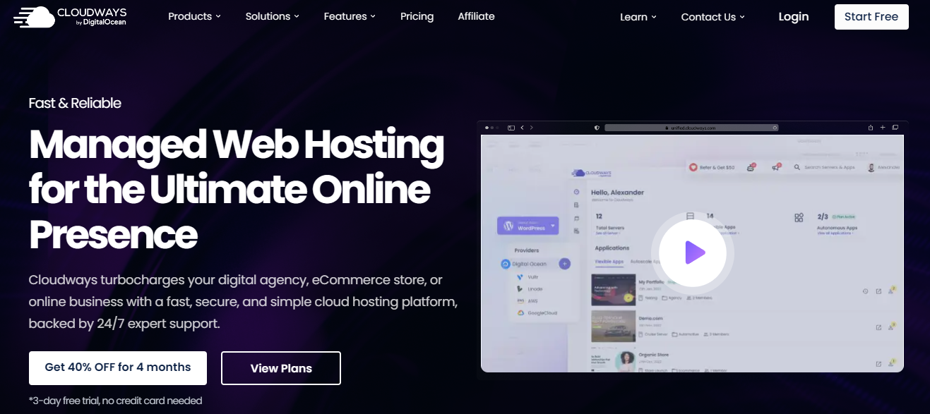 Cloudways is a high-performance cloud hosting platform that simplifies hosting and server management for businesses. Trusted by digital agencies, e-commerce businesses, and SMBs, Cloudways offers hosting solutions across 50+ data center locations worldwide. Known for its fast speeds, it offers a choice between DigitalOcean, Vultr, Linode, Google Cloud Platform, and AWS as your preferred provider.