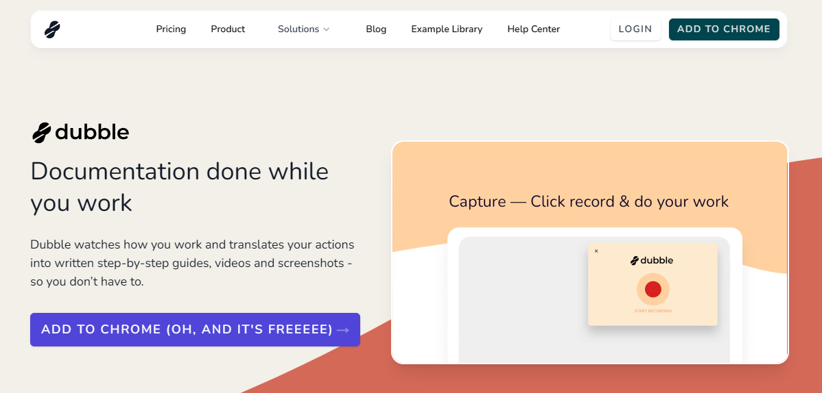 Dubble is a step-by-step guide creator that tracks how you work and automatically turns your actions into a written step-by-step guide with videos and screenshots. You can use it for documentation, product manuals, context sharing, product demos, and more. It also has a intuitive editor that allows you to refine guides by letting you edit descriptions, annotate screenshots, and hide sensitive information.