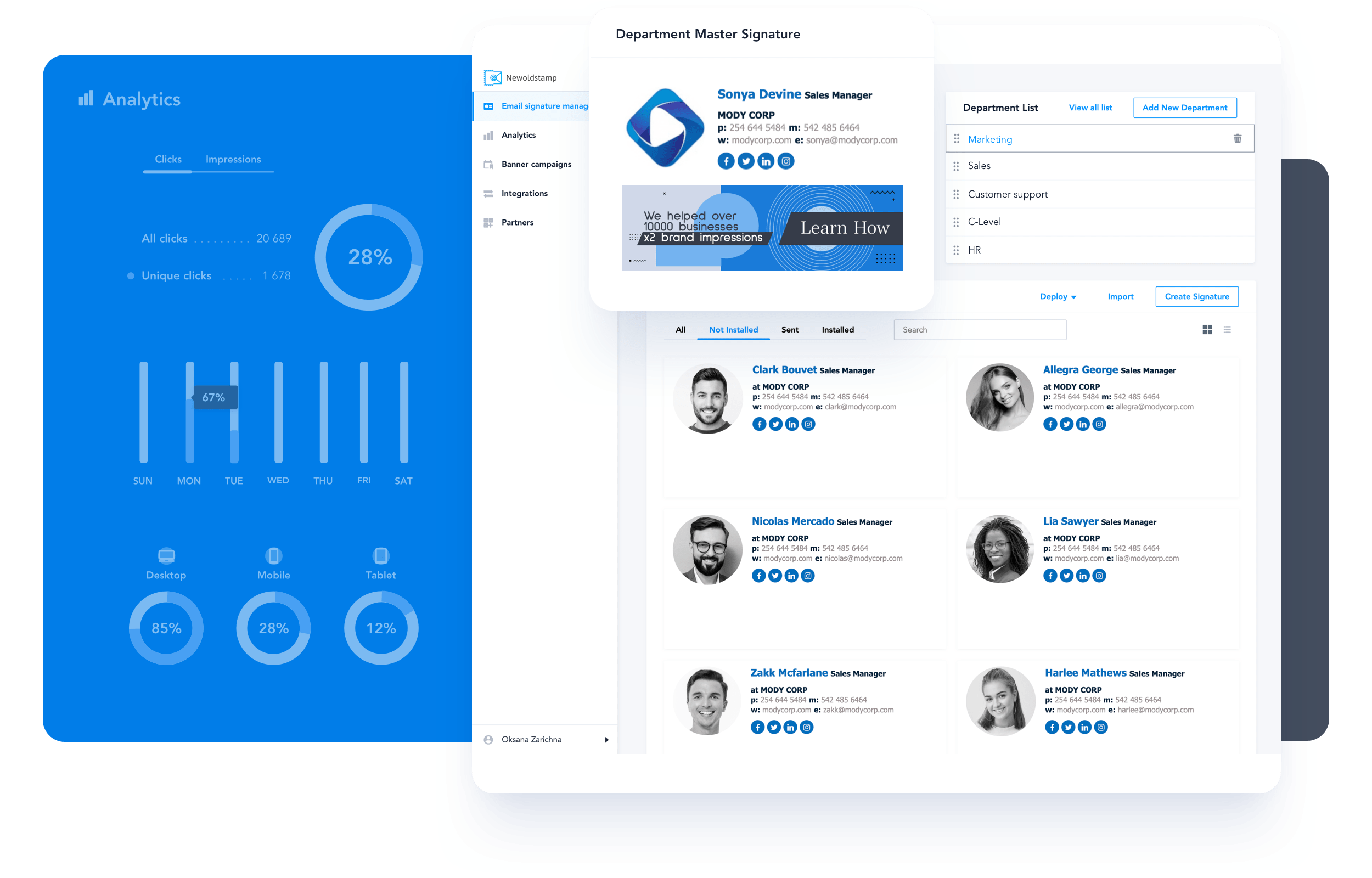 Newoldstamp is an email signature management platform that enables you to easily design and implement brand-consistent signatures across your entire organization. With a single dashboard, you can manage all signatures, streamline updates, and seamlessly integrate with major email clients like Google Workspace, Exchange, and Microsoft 365—helping boost marketing and sales conversions through branded email communication.
