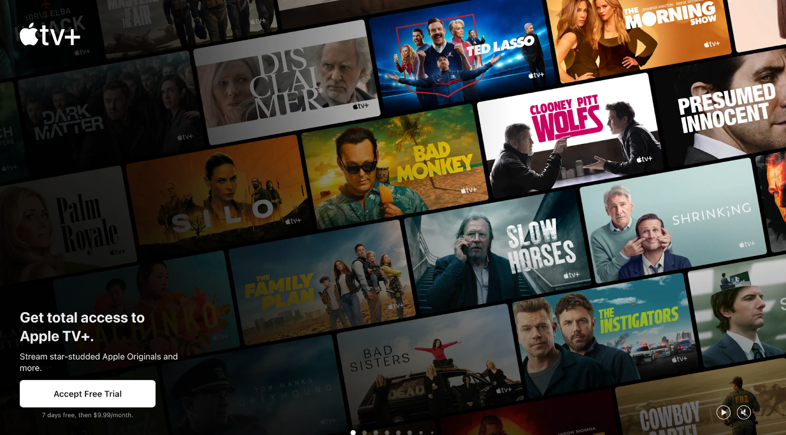 These pages often include a catchy headline, short text, and a simple CTA. Here’s how Apple TV+ uses this approach to guide users toward starting a free trial: